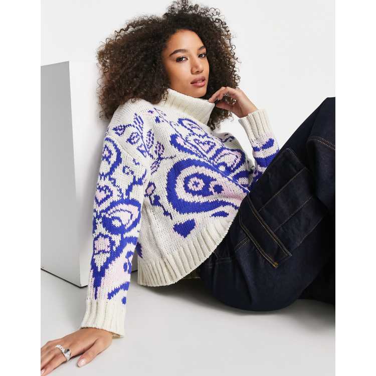 Bershka swirl print chunky roll neck jumper in white ASOS Very well made.