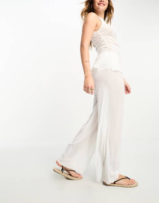 Pull Bear textured sheer pants in white part of a set Very well made.
