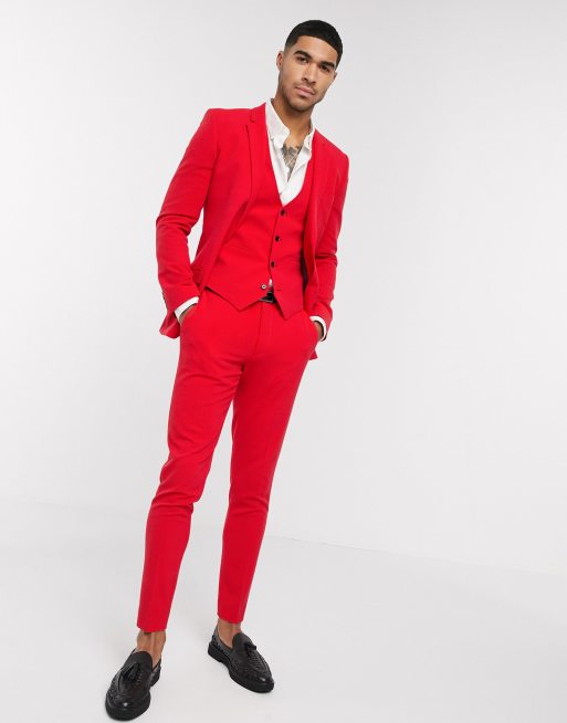 ASOS DESIGN super skinny suit suit vest in bright red in four way stretch Very well made.