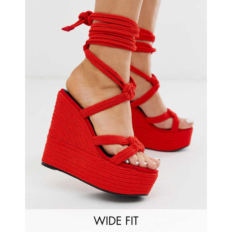 ASOS DESIGN Wide Fit Will Power tie leg rope wedges in red Very well made.