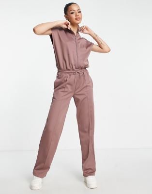 adidas Originals Contempo chunky striped jumpsuit in mauve Very well made.