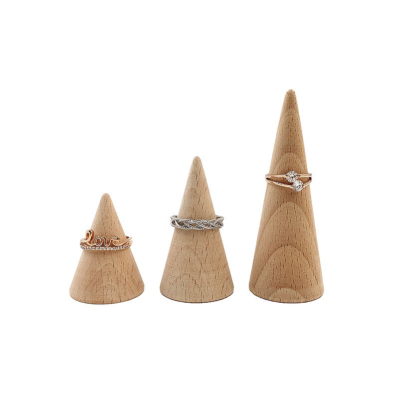 Cheap 2 Pieces Unpainted Cone Shape Wooden Ring Jewelry Display Very well made.