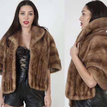 60s Natural Brown Mink Fur Capelet Real Autumn Haze Cape Very well made.