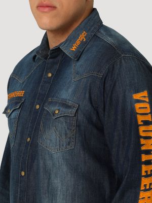 Men s Wrangler Collegiate Denim Western Snap Shirt Very well made.