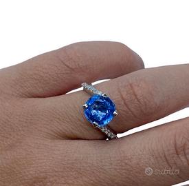 Anello Gemma Taglio Ovale Zaffiro Blu Diamanti 3 Carati Oro Very well made.