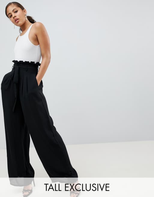 Missguided Tall exclusive tall paper bag waist wide leg trousers Very well made.