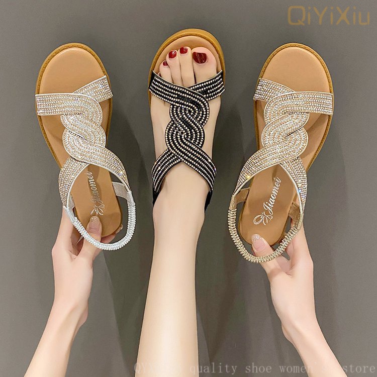 Korean Version Shiny Wedge Open Toe Elastic Band Sandals Women Very well made.