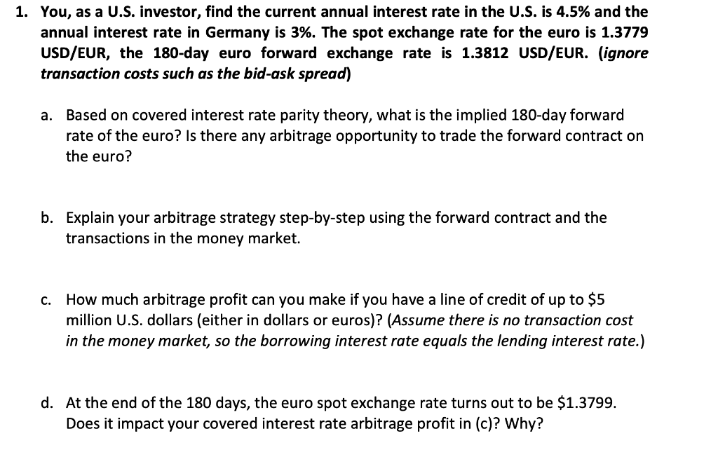 Solved 1. You as a U.S. investor find the current annual Chegg Very well made.