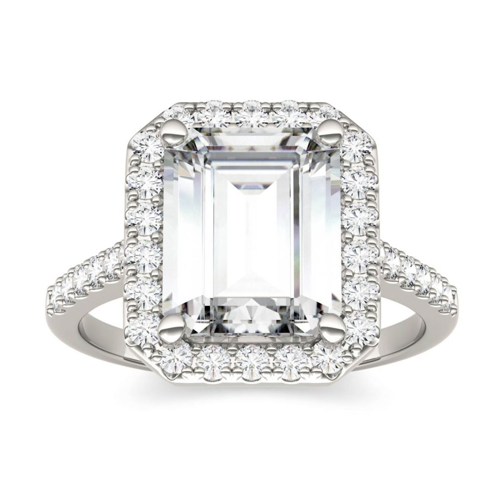 Moissanite by Charles Colvard 14K White Gold 4.06 DEW Emerald Very well made.
