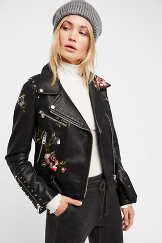 Faux Leather Embroidered Moto Jacket Free People Very well made.
