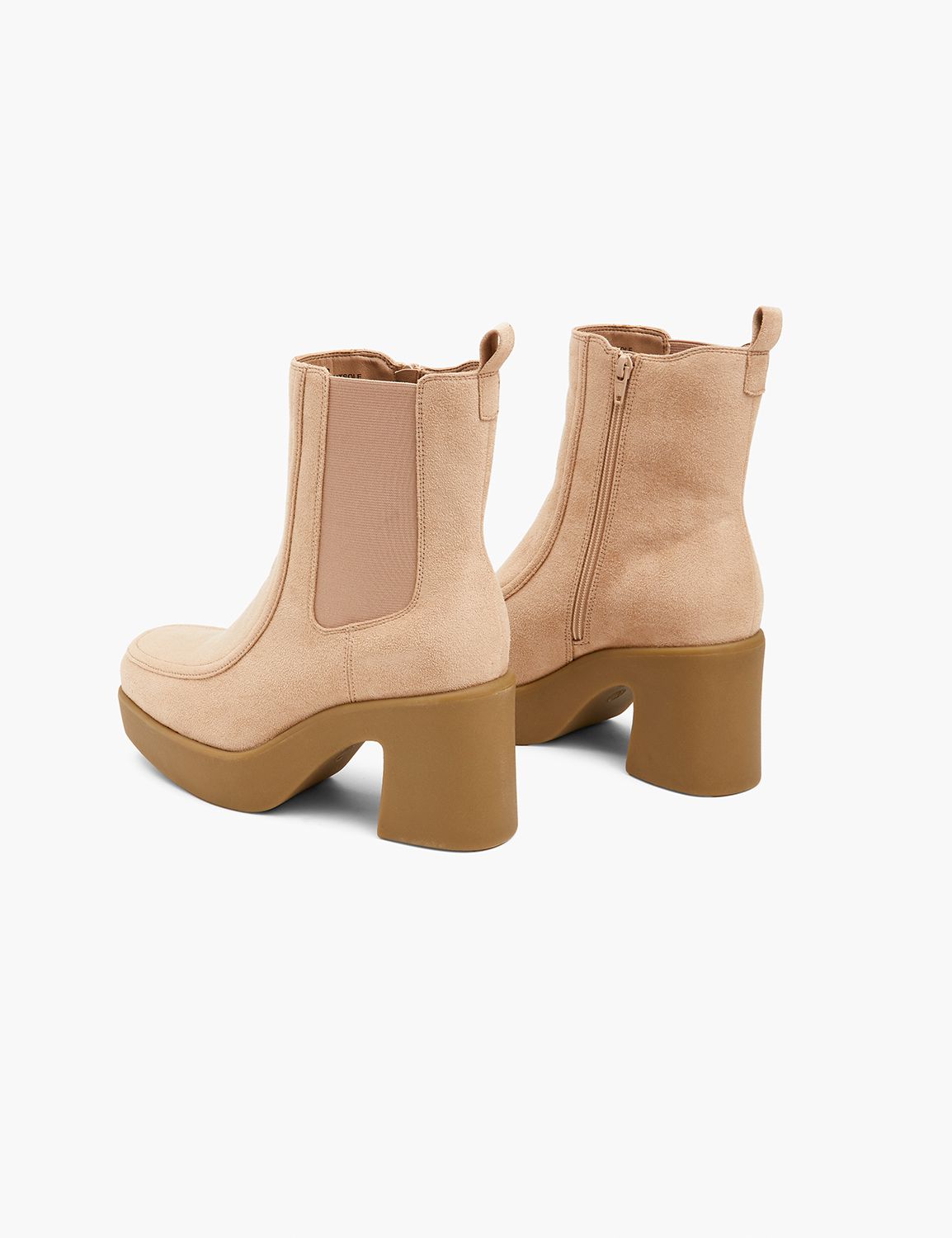 Esprit Beige Faux Suede Pull On Block Heel Booties Ankle Boots Very well made.