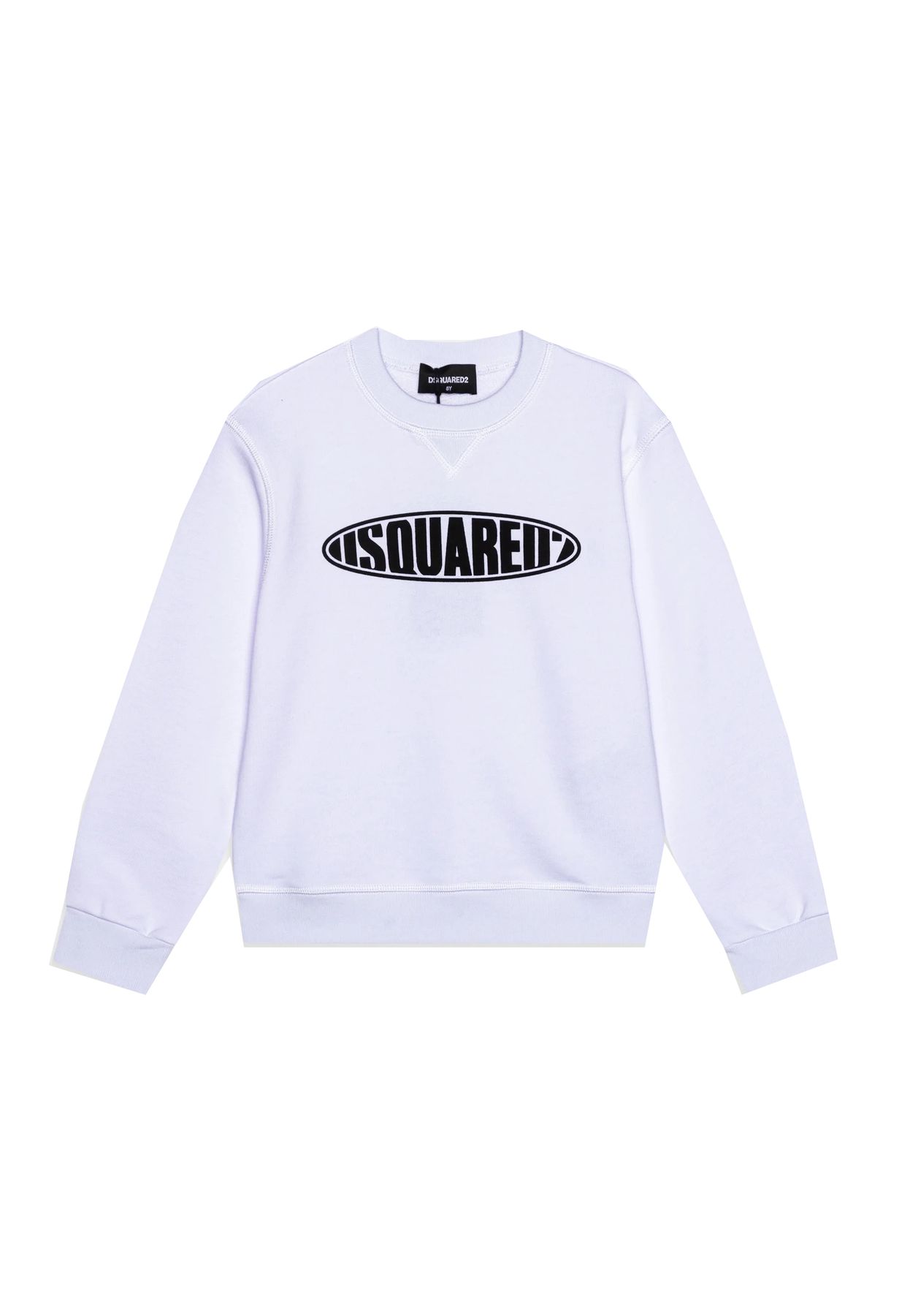 Dsquared felpa bianca girocollo per ragazzo stampa logo nero Very well made.