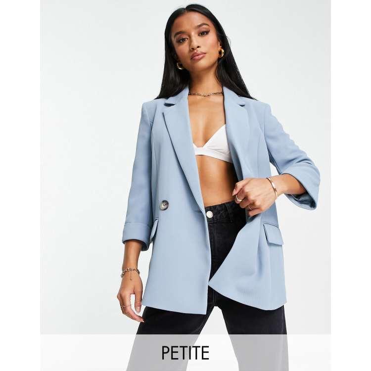 River Island Petite ruched sleeve blazer in light blue Very well made.