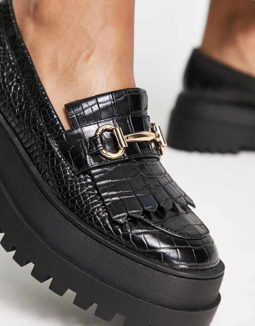 London Rebel wide fit snaffle apron loafer in black croc Very well made.