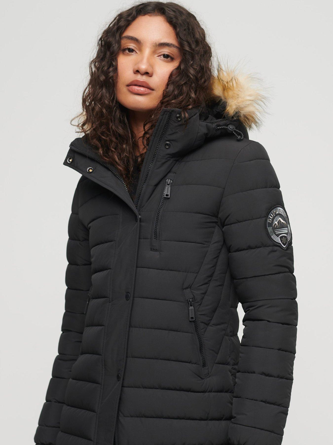 ASOS DESIGN puffer jacket with faux fur hood in black Very well made.