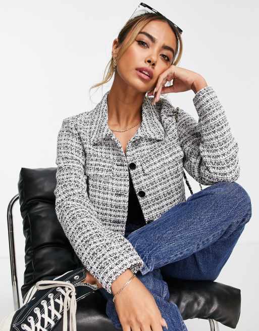 Vero Moda FRSH button front boucle jacket co ord in black white Very well made.
