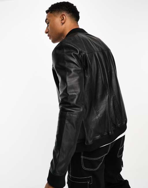 Muubaa plain varsity leather bomber jacket in black Very well made.