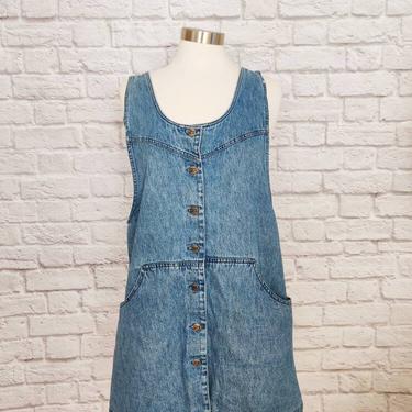 Vintage 90s Denim Jumper Dress Blue Button Up Overall Style Very well made.