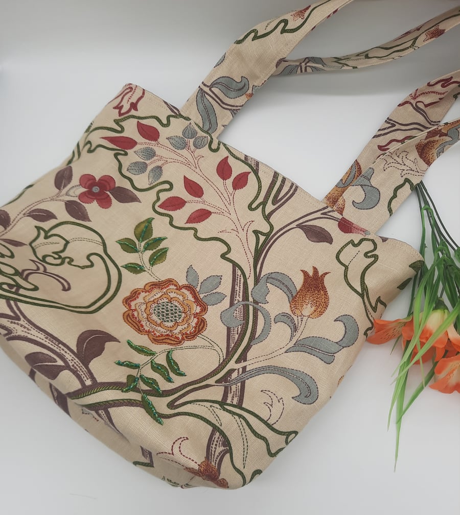 Tote bag beige floral print with beading. Folksy Very well made.