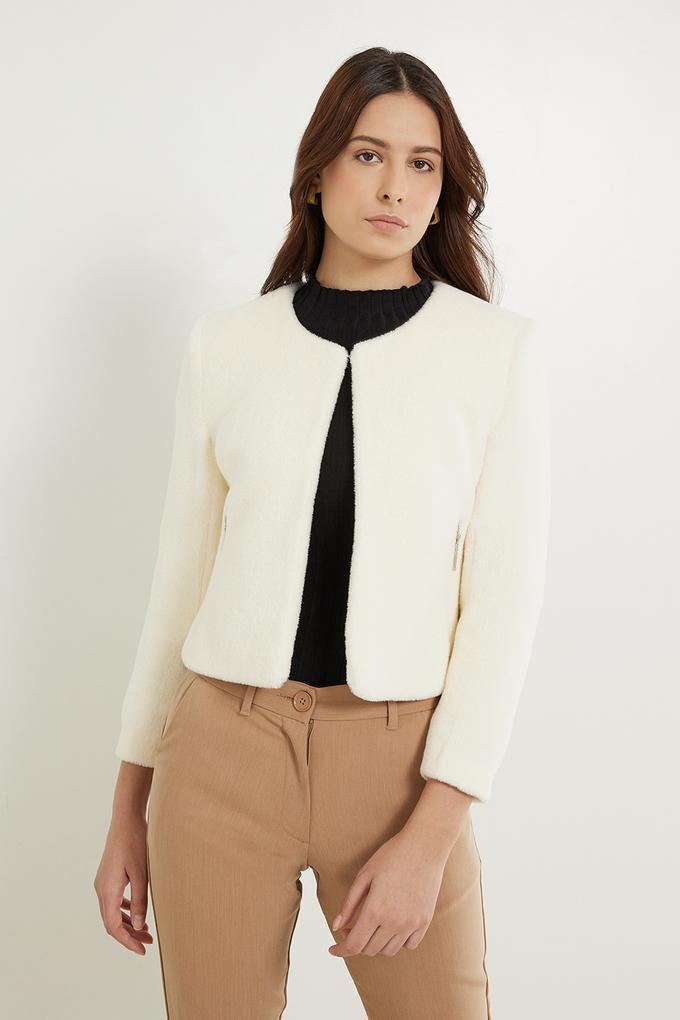 Buy STOP White Solid Round Neck Polyester Women s Jacket Very well made.