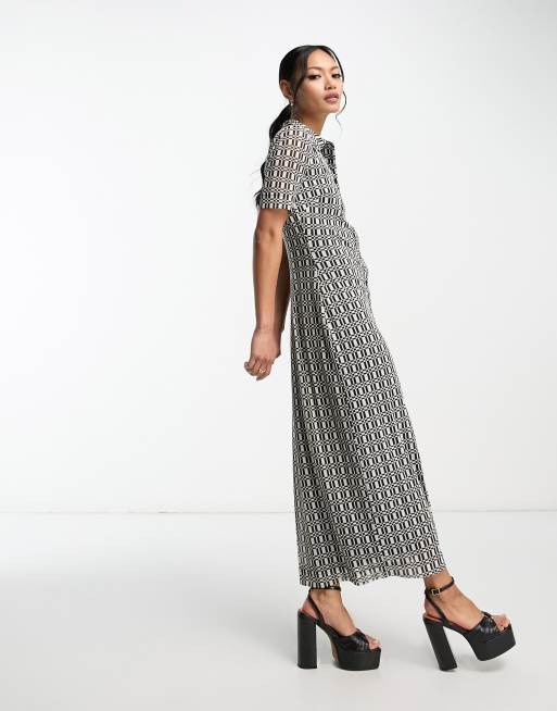 Whistles short sleeve midi sheer dress in geometric print Very well made.