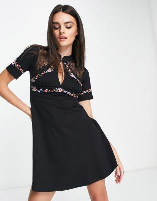 ASOS DESIGN short sleeve mini dress with lace detail and floral Very well made.