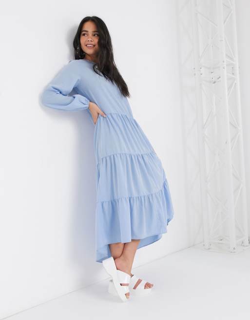 Monki long sleeve tiered midi dress in light blue Very well made.