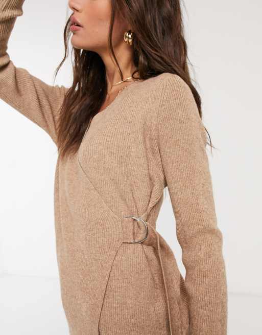 V Neck Wrap Jumper Dress in Beige Chi Chi London Very well made.