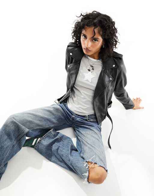 Biker Chic Black Washed Effect Faux Leather Cropped Belted Biker Very well made.