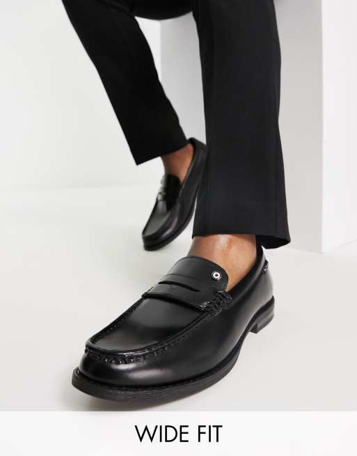 Ben Sherman Wide Fit dressy leather penny loafers in black Very well made.