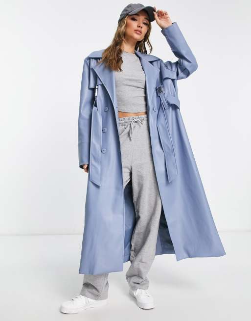 NA KD x Angelica Blick faux leather trench coat in blue ASOS Very well made.