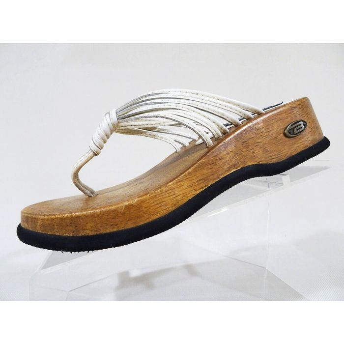 Vintage US 7 Vtg 90s Bongo White Strappy Leather Wood Chunky Y2K Very well made.