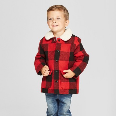 Toddler Boys Buffalo Plaid Field Jacket Cat Jack Red 4T Very well made.