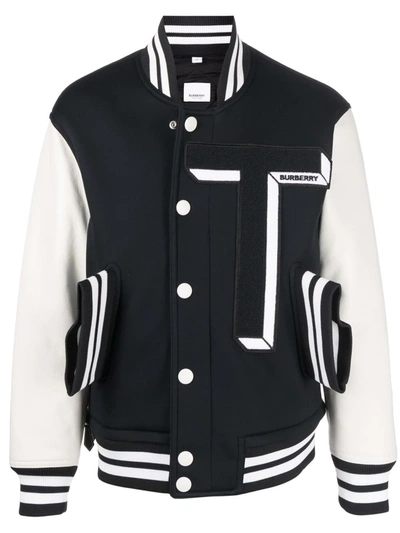 Burberry Leather Sleeve Varsity Jacket In Black ModeSens Very well made.