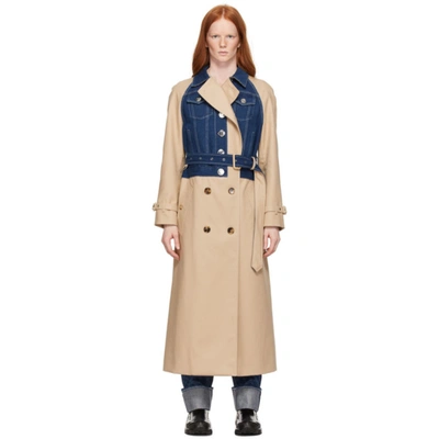 Burberry Paneled Cotton gabardine And Denim Trench Coat In Beige Very well made.