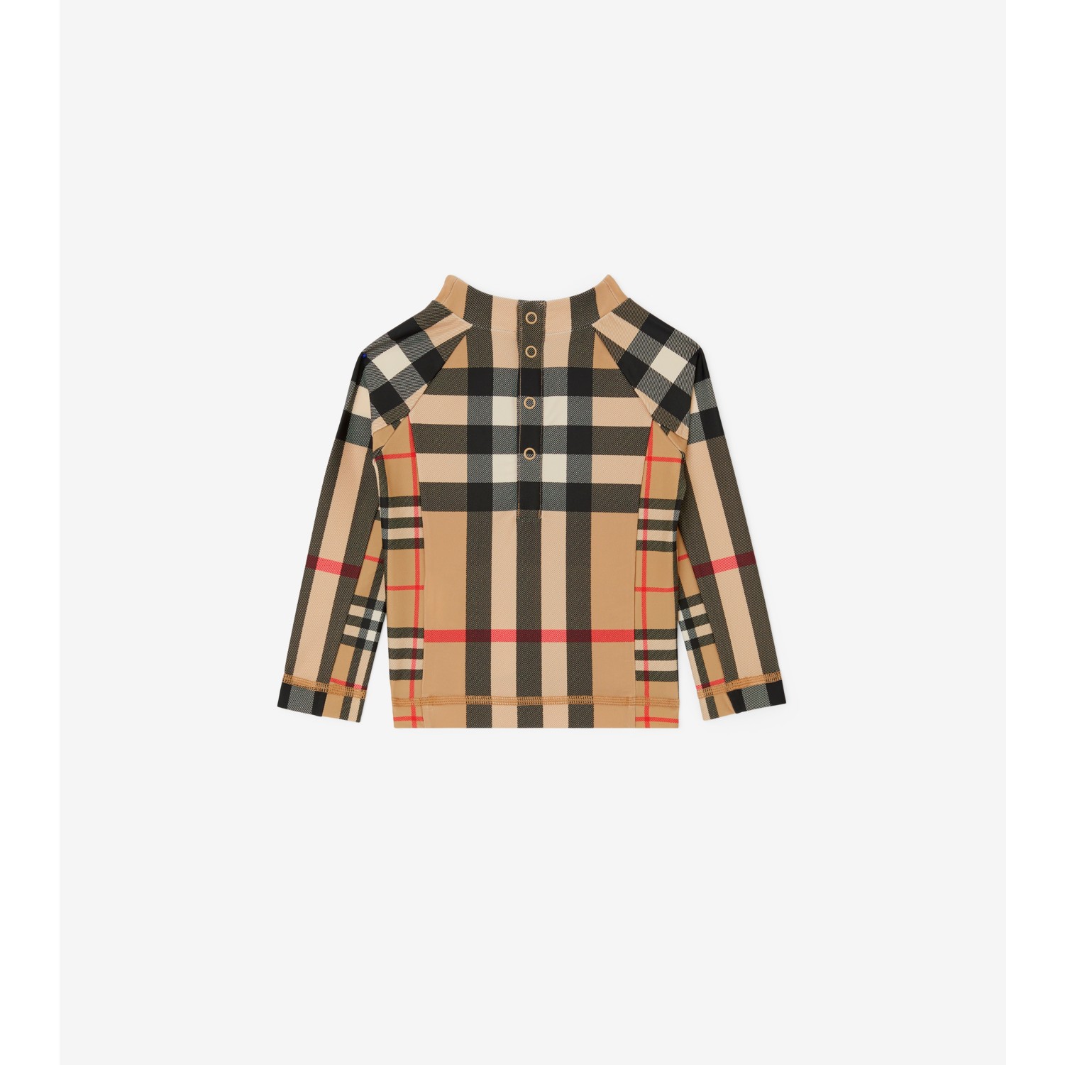 Contrast Check Stretch Nylon Rash Vest in Archive Beige Children Very well made.