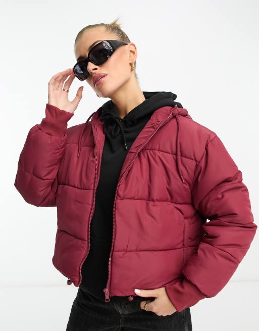 ASOS DESIGN puffer jacket with hood in burgundy Very well made.