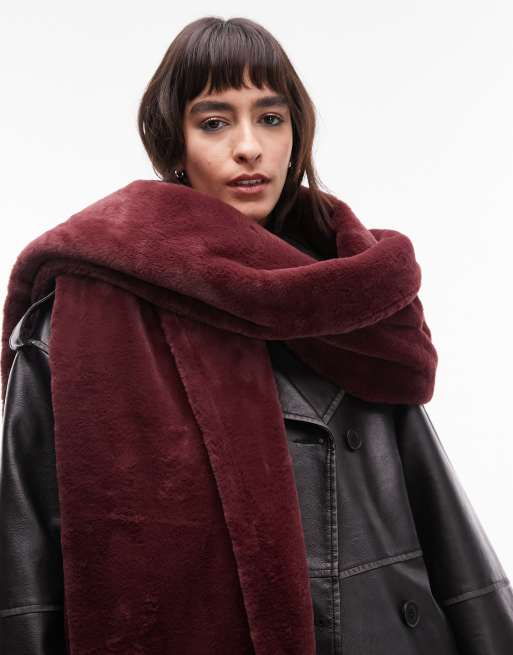 Topshop Sid wide fur scarf in burgundy Very well made.