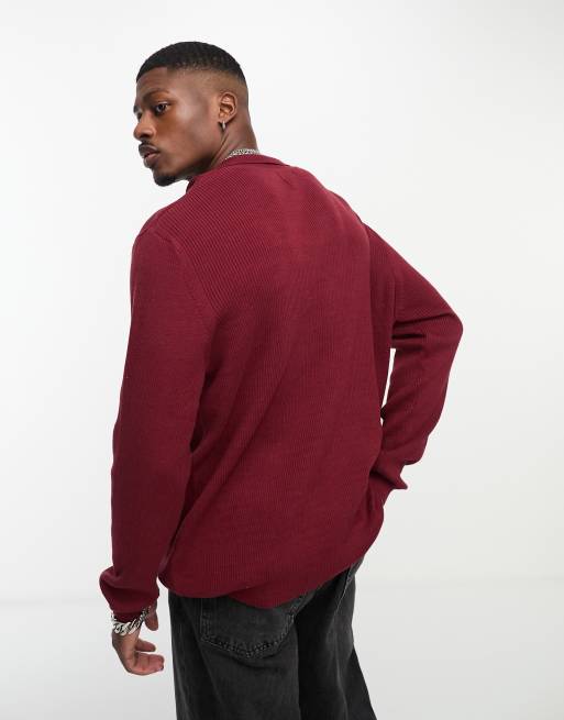 ASOS DESIGN oversized knit essential ribbed polo sweater in Very well made.