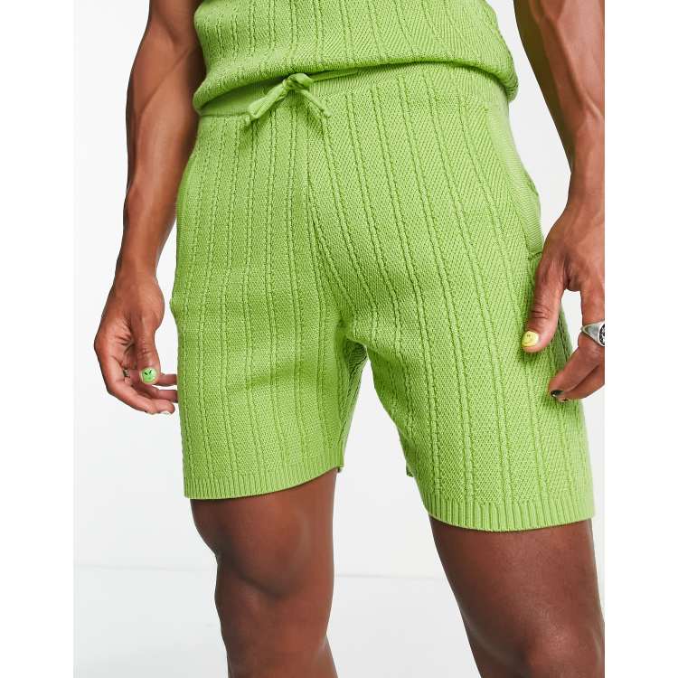 ASOS DESIGN cable knit shorts in green part of a set Very well made.
