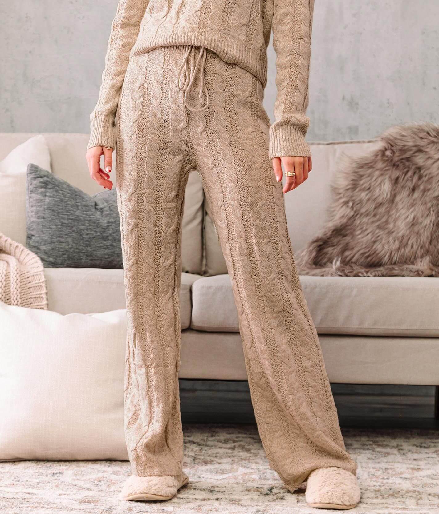 2 Piece Long Sleeve Pant Set Cable Knit Loungeset Matching Very well made.