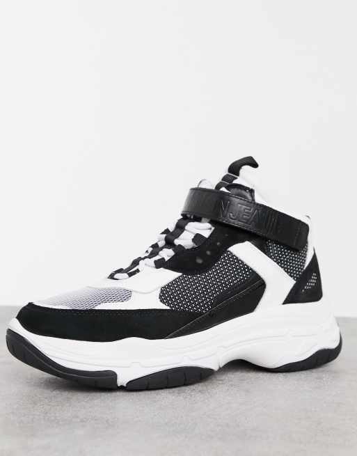 Calvin Klein Jeans Leather Vibram Chunky Trainers White Black Very well made.