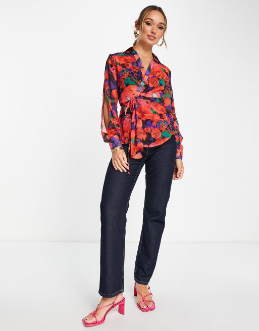 ASOS DESIGN Camicia trasparente a portafoglio con spacco sulle maniche e stampa a fiori Very well made.