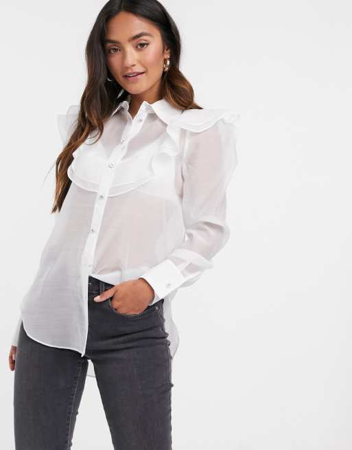River Island Camicia con ruches frontali in rete bianca Very well made.