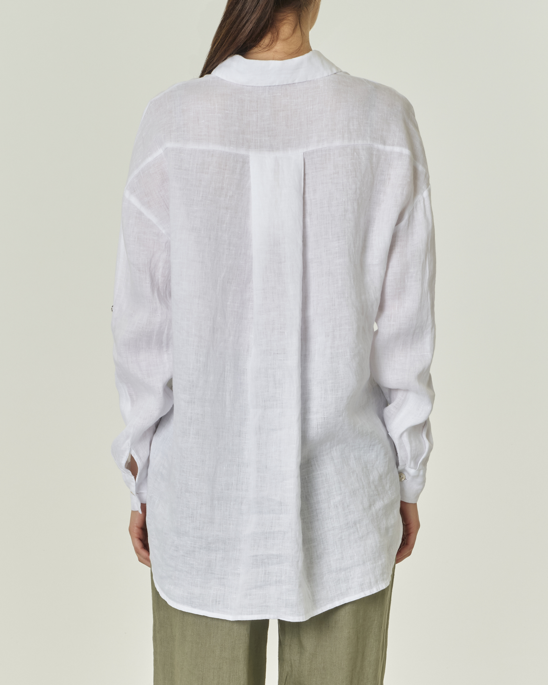 Camicia bianca in lino con fondo pi lungo sul retro Very well made.