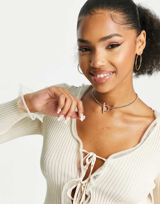 Urban Revivo cardigan with tulle detail in beige Very well made.