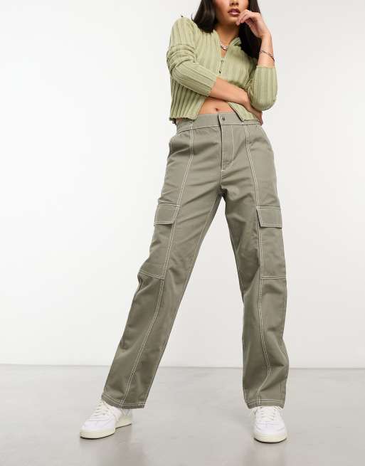ASOS DESIGN seam detail cargo trouser in khaki with contrast stitch Very well made.