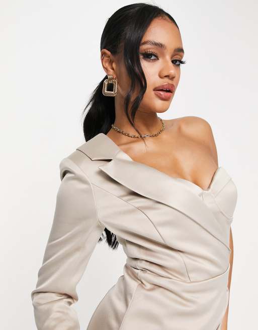Lavish Alice one shoulder satin mini blazer dress in champagne Very well made.