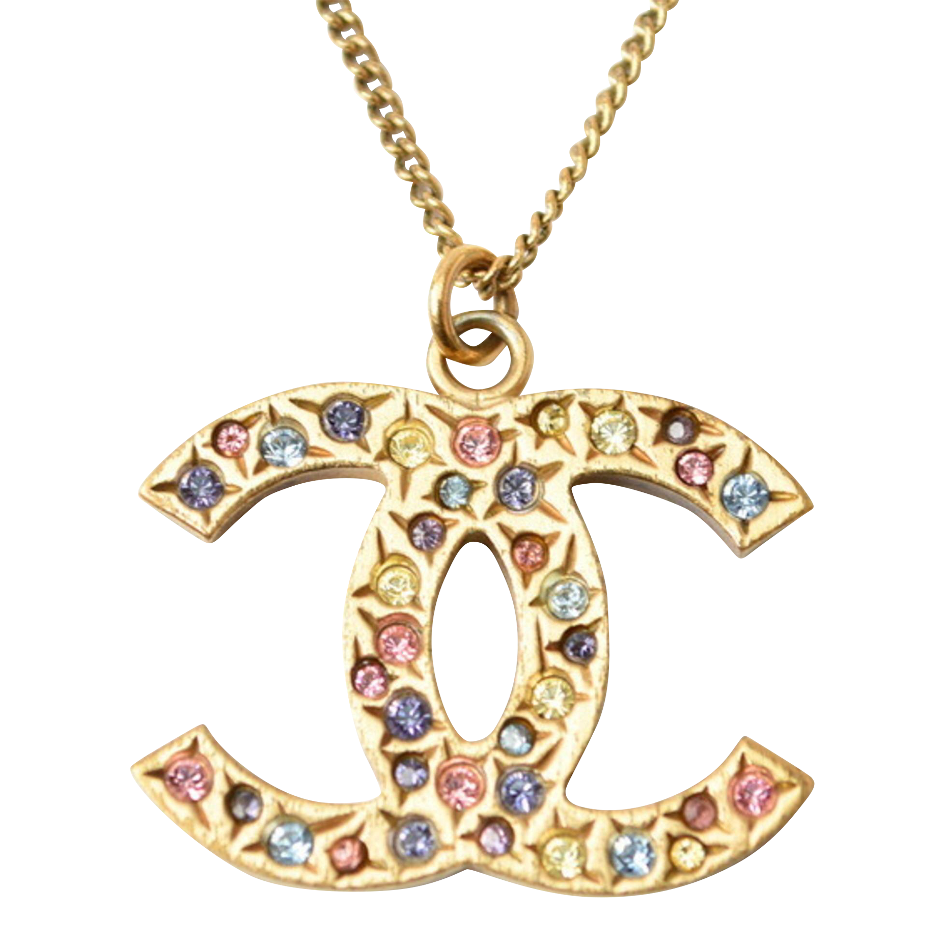 Chanel Necklace Pendant Here Mark Cc Rhinestone Gold Multi Chairish Very well made.