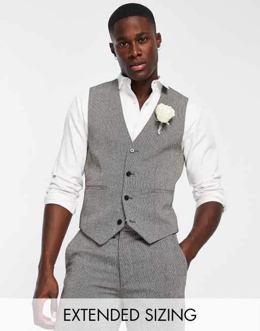 ASOS DESIGN wedding skinny wool mix suit waistcoat in mono basket Very well made.